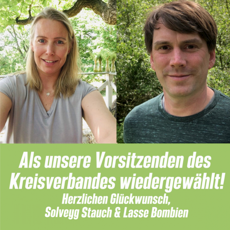 Auf seiner Jahreshauptversammlung am Samstag, 11.06.2022, im Rendsburger Nordkolleg hat der Kreisverband Rendsburg-Eckernförde von BÜNDNIS 90/Die Grünen einen neuen Vorstand gewählt. Die beiden Vorsitzenden Solveyg Stauch (42) und Lasse Bombien (44) wurden in ihrem Amt bestätigt. Ebenfalls weiterhin dabei sind die stellvertretenden Vorsitzenden Selke Harten-Strehk (56) und Georg Wilkens (67). Neu hinzugekommen sind als Schatzmeister Nikolai Kamp (33) sowie als weitere stellvertretende Vorsitzende Anneke Wilken-Bober (46), Lise Dotzer (23) und Torge Klein (24).